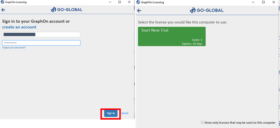 ※ Go-GlobalへのサインインはGo-Globalをインストールする対象のサーバの認証情報を利用します。前段の手順にてGo-Globalのインストール作業を行ったユーザでサインインできます。