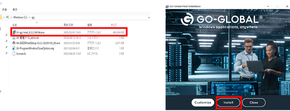 13.「01-gg-host_6.3.2.34154.exe」を起動し、「install」を押下します。