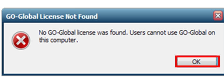 ※翻訳 : Go-Globalライセンスを見つけることができません。ユーザは、このコンピュータでGo-Globalを使用することができません。