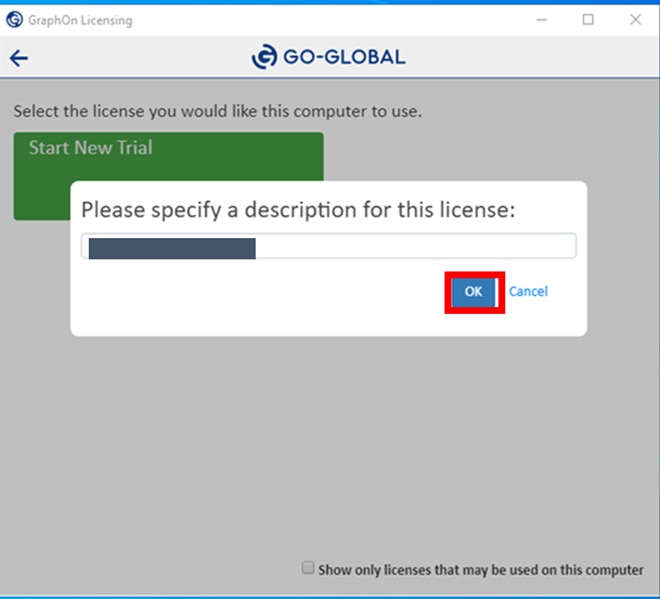 5.「<自身の名前>’s GO-Global Trial」と表示されていることを確認し、「OK」を押下します。