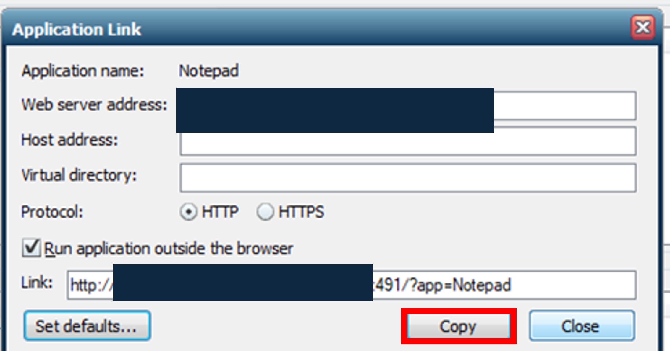 2.Go-Globalをインストールする対象のサーバ内のブラウザにて、コピーしたリンクの末尾「?app=Notepad」を削除し開き、「Start AppContoller」を押下します。